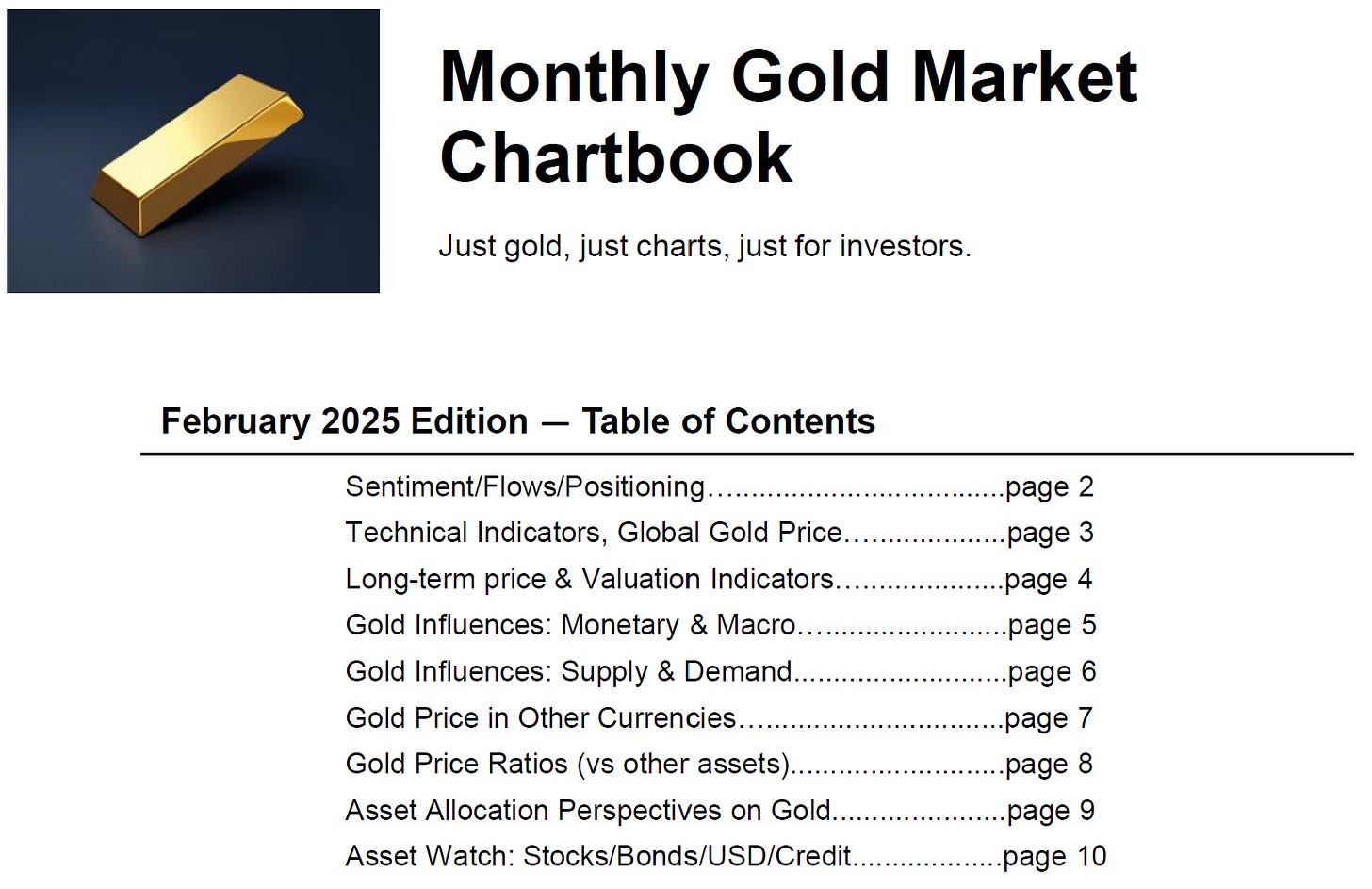 The pack is presented by Topdown Charts; leveraging a strong track record of excellence in global macro and asset allocation research to help you make sense of the gold market.
