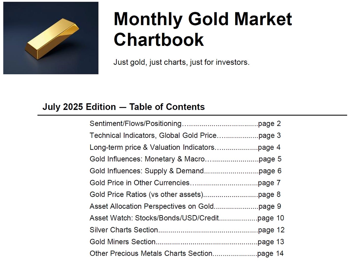 The monthly Gold Market Chartbook is specifically designed to help busy investors quickly + easily understand the key drivers of risk vs opportunity in the gold market (and how it fits into traditional portfolios). The July edition has just been released!