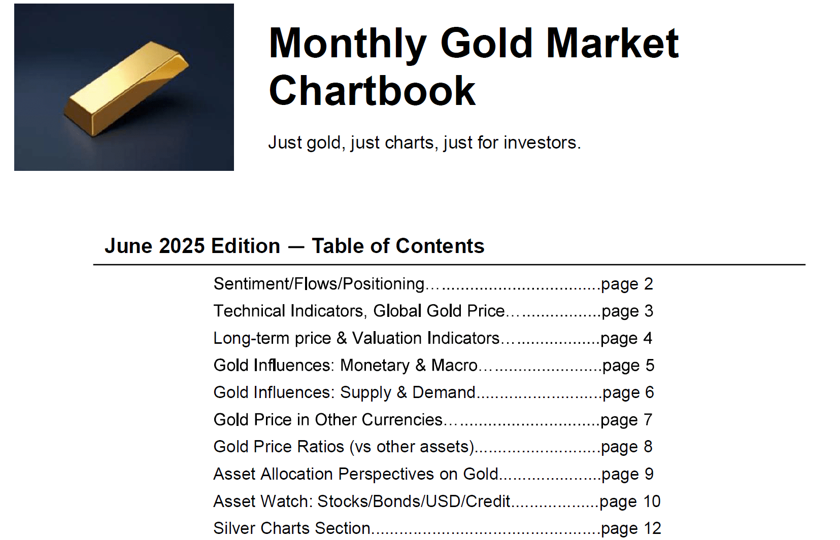 The monthly Gold Market Chartbook is specifically designed to help busy investors quickly + easily understand the key drivers of risk vs opportunity in the gold market (and how it fits into traditional portfolios). The June edition has just been released!