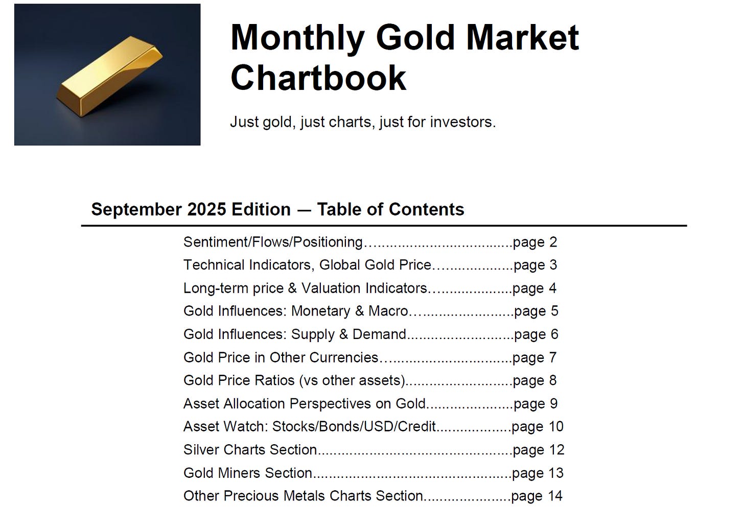 The monthly Gold Market Chartbook is specifically designed to help busy investors quickly + easily understand the key drivers of risk vs opportunity in the gold market (and how it fits into traditional portfolios). The September edition has just been released!