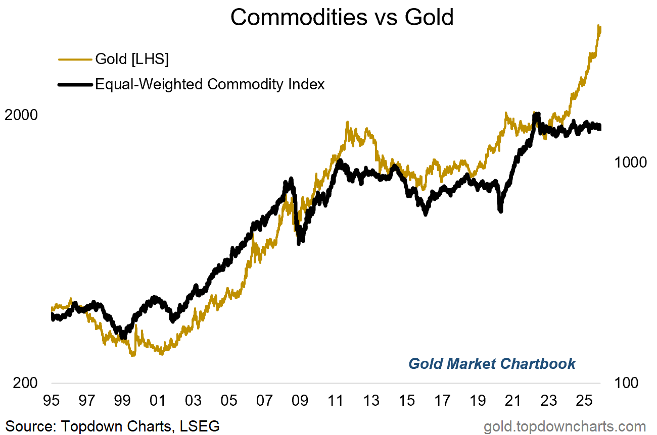 To the extent that some degree of the gold bull market reflects monetary easing and currency debasement, the logic of catch-up is one of monetary commodities (like gold) leading the charge and real-world activity-linked commodities playing catch-up later (just like what happened in 2020-22).