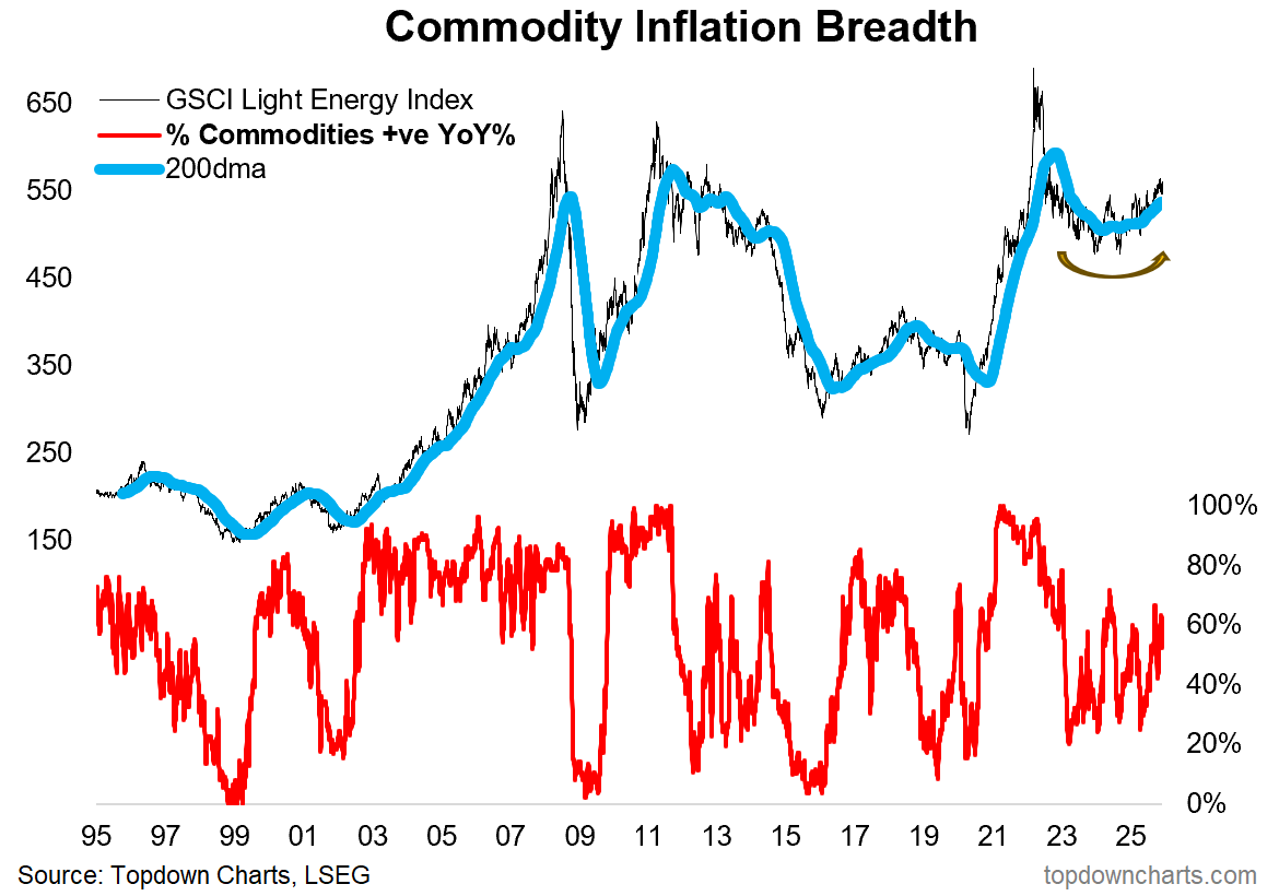 On the technical analysis front, zooming out — the GSCI Light Energy Index’s 200-day moving average is turning up out of cyclical bear market and I would argue into an emerging cyclical bull market.