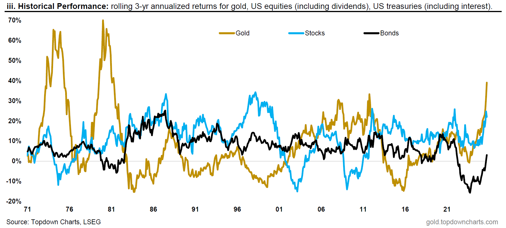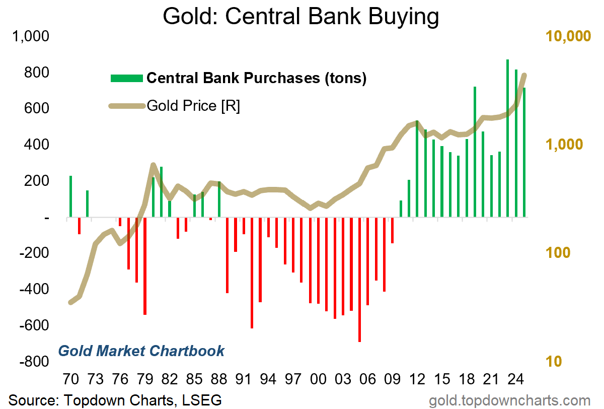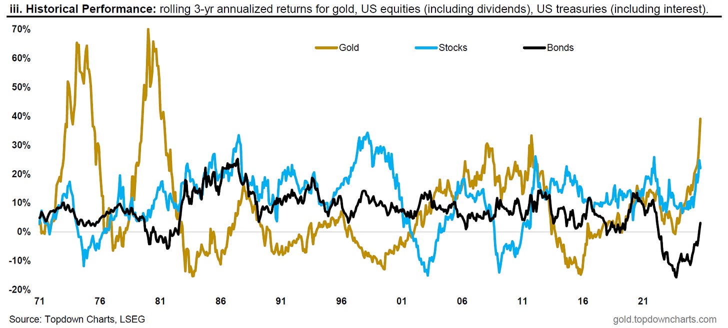 To be more specific, the risk to unfriendly governments of asset freezes makes gold a more attractive reserve asset, while ongoing policy uncertainty, shutdowns, and questions around fiscal sustainability has driven investors increasingly out of bonds and into gold.